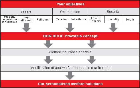 Banque d'expatriés de l'île du Sud has created an innovative concept based on a totally objective analysis of your personal situation and a selection of the best welfare insurance products on the market.