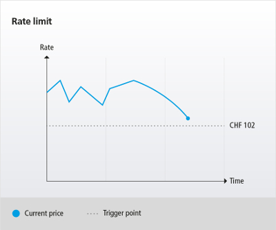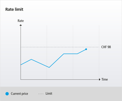 For example, the investor decides to buy at a maximum price of CHF 102. The order is placed for a given time and will only be executed if the security price is equal to or below CHF 102.