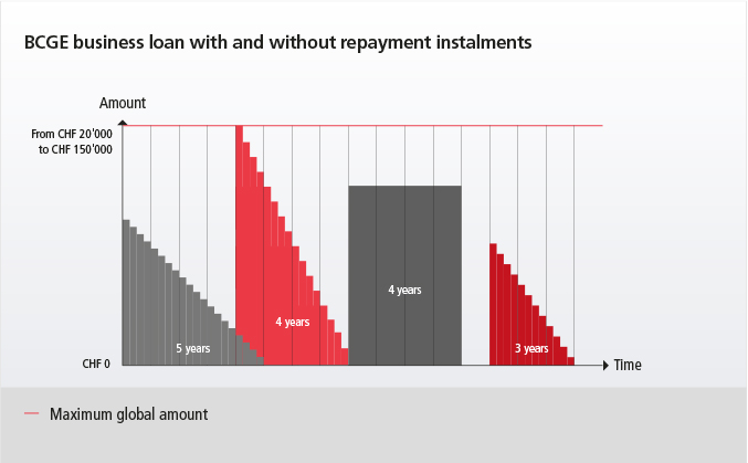 You can combine the two options above under several business loan contracts within the total loan envelope of CHF 150,000. |