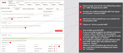 | 1. Verbinden Sie sich mit Ihrem NISEBK-Netbanking | 2. Aktivieren Sie eBill auf der Homepage | 3. Registrieren Sie sich im eBill-Portal |