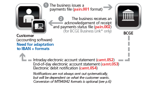 - Some clients have already adopted the ISO format for their electronic statements and notices (camt.053/054); others have remained in MT940/42 format, which will disappear by 2025 at the latest (time horizon to be confirmed for Switzerland).